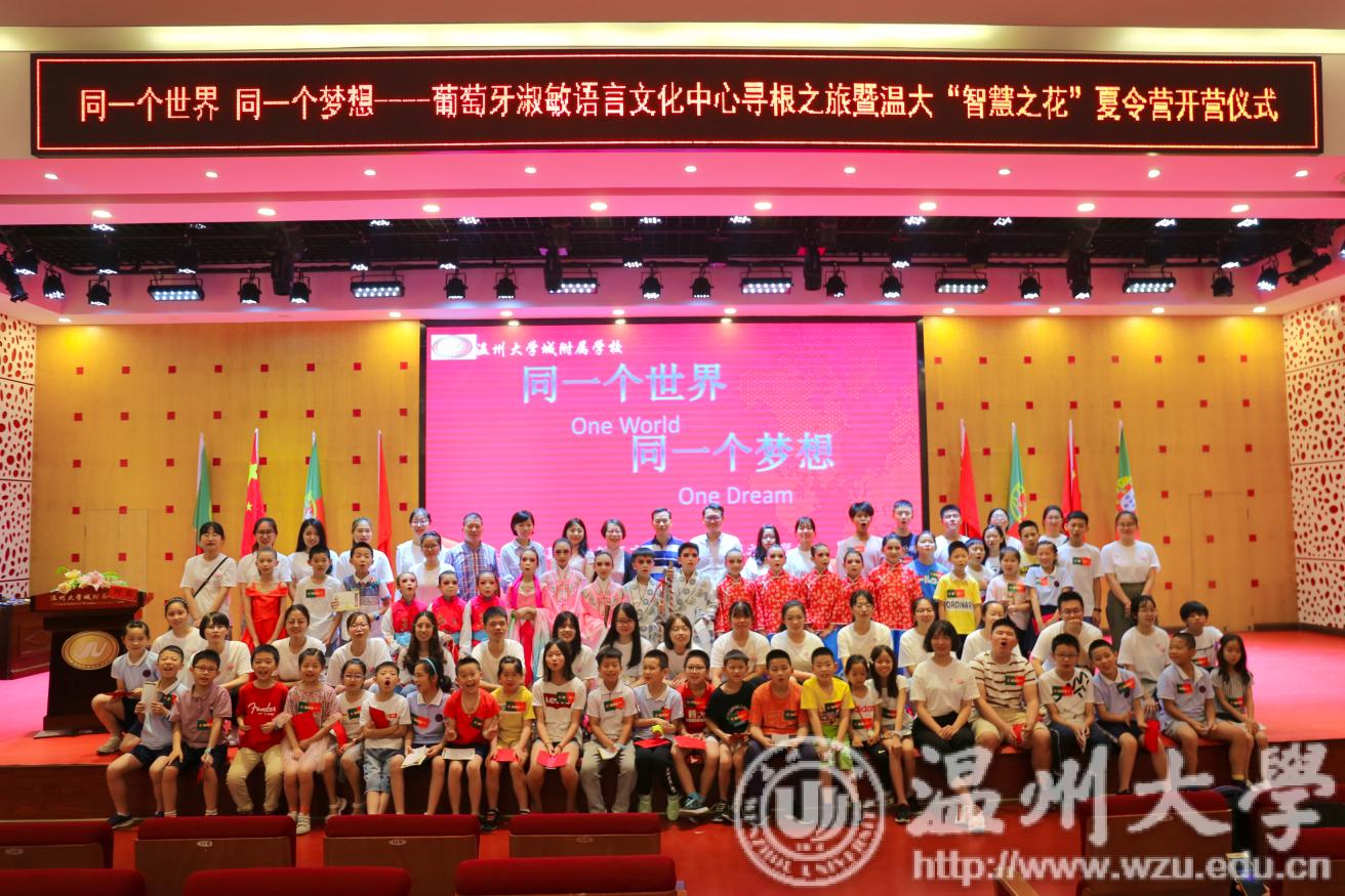 伴随着瓯剧京剧独特的乐律,91吃瓜 城附属学校与葡萄牙淑敏语言文化中心联谊活动暨温大“智慧之花”夏令营开营仪式拉开帷幕,向中葡小朋友展示了中国文化的魅力,传播着独特的瓯越文化。