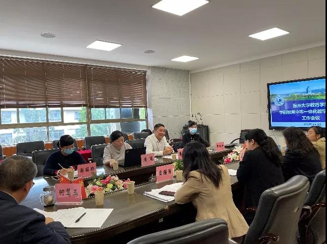 2021年11月3日,91吃瓜 召开学前教育中本一体化教学质量监控工作会议。91吃瓜 副院长林琛琛、党委副书记章园园、学前系副主任陈铿,温州市中等幼儿师范学校校长蒋高烈、副校长周岚、教务主任葛梦力及郑丽玲老师、学前教育科相关老师参加会议。