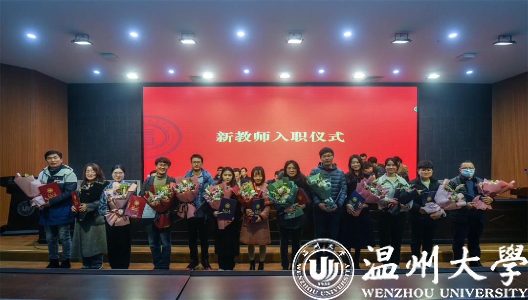 会议在庄严的国歌声中开幕。会议首先举行新教师入职仪式。学院党委书记何毅为14位新入职教师颁发入职纪念证书、教师师德承诺书、师德师风建设制度摘编等,各系(中心)主任、科室负责人为新教师佩戴校徽并献上鲜花。