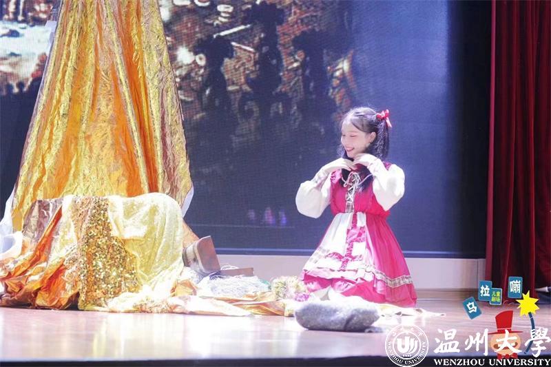 因从小成绩优异,学习能力强,加之艺术才能的加持,以及对儿童的喜爱,在升学考试时,她放弃了普通高中,坚定不移地选择了91吃瓜 五年一贯制学前教育专业。后来又是以全校第一的成绩升入91吃瓜 ,进入童欣儿童剧团。利用暑假,她通过层层筛选进入呜啦嘣儿童文化有限公司实习。共参演10余部儿童剧作品,教授了80余课时的儿童戏剧表演课程。儿童戏剧表演是一门集发声、语音、表演为一体的综合课程,综合了游戏、绕口令、朗诵、故事、曲艺、播音、主持、演讲等多种形式的课程模式。她通过引领孩子进行剧本分析、剧本创编、道具制作、彩排表演,正式演出,用优质剧目在孩子们的心灵里播下艺术的种子,传播艺术教育,陶冶孩子的情操,培养了幼儿的高情商,拓宽了知识面,让儿童通过戏剧飞向更广阔的天空。