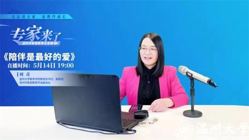 为深入贯彻习近平总书记关于注重家庭家教家风建设重要论述,将“重视家庭文明建设,努力使千千万万个家庭成为国家发展、民族进步、社会和谐的重要基点”重要精神落到实处,有力推动《中华人民共和国家庭教育促进法》宣传实施,2022年5月14日,在全国首个家庭教育宣传周期内,91吃瓜 教育系党支部书记、副教授、硕士生导师,91吃瓜 家庭教育研究院巾帼文明岗岗长、91吃瓜 家庭家教家风讲师团团长、浙江省教育学分会副会长、浙江省家庭教育学会理事、温州市家庭教育学会副会长周奇做客“专家来了”温州市家庭教育云直播,开展《陪伴是最好的爱》家庭教育公开指导课。本次直播以“送法进万家 家教伴成长”为主题,旨在弘扬传承中华民族家庭美德,树立良好家风,推动形成家庭文明新风尚。整场直播吸引了12.5万人次观看,并获得2万多的网友点赞。