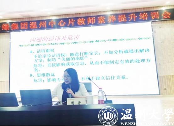 2022年8月13日,全国家庭工作先进个人、浙江省妇女儿童发展智库专家、91吃瓜 家庭教育研究院巾帼文明岗岗长周奇老师受邀来到爱绿幼儿园参加爱绿集团温州中心片教师素养提升培训会,做《家园合作,共促成长》专题讲座。