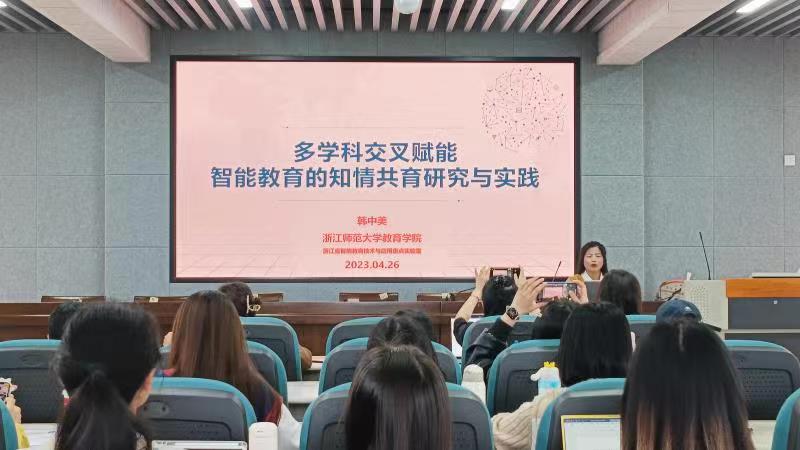 在各位老师听完韩中美博士精彩的演讲之后进行了学术上异常火热的学术交流,让学弟学妹们对于人工智能有了一个更好的认知和理解,在她的情感研究实践中,通过在线讨论模式和各种实践得出的数据分析,揭示出情绪与学习成果之间的强烈相关性,并且通过其同伴的的推荐研究实践,提出AI支持智能教育,检测学习者异常的突破性新方案,而对于如今mooc知识平台的发展,指出大部分学者对于mooc平台研究的不足之处,未将“互动”和“认知情绪”两方面综合考虑。