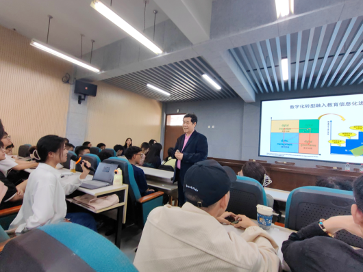 教育数字化转型已经成为时代趋势,2023年5月5日下午,我系有幸邀请到了祝智庭教授于南校区9C301开展了主题为《教育数字化转型走向智慧教育》的讲座。