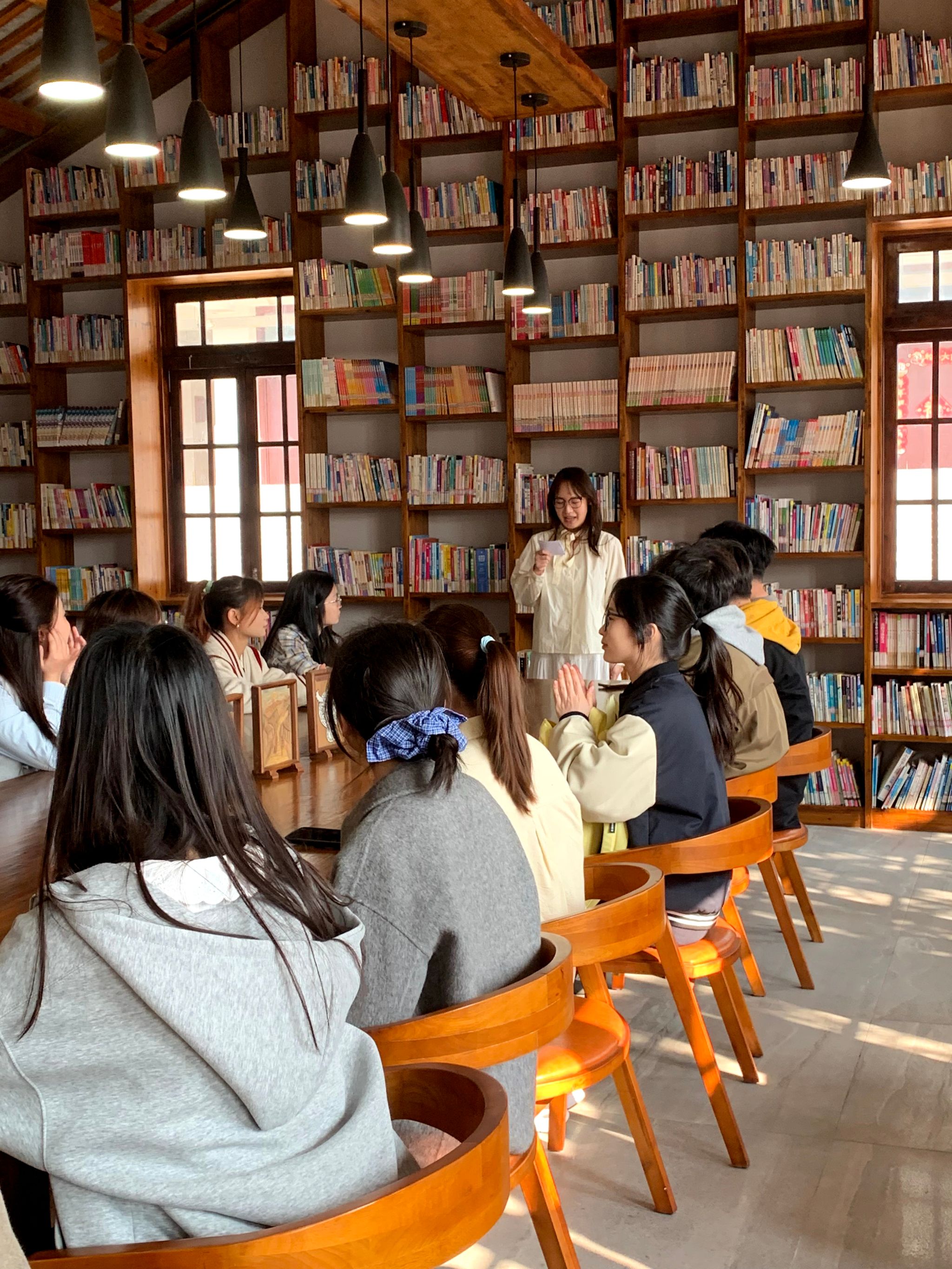 跟随着小小讲解员的指引,我们了解到林斤澜先生的成长轨迹与广场路小学紧密相连。其父亲林丙坤于1914年创办了一所小学,即如今的广场路小学沧河校区。2004年,林斤澜先生在沧河小学90周年校庆时重返母校,感慨道“温州童年回忆在可爱的沧河巷,梦境般美好”。正因这份深厚情谊,林斤澜文学馆选址于此。生动的语言讲解结合形象的馆藏呈现,令在场的实习老师们无一不深刻感受到文学的力量与文化传承的重要性。