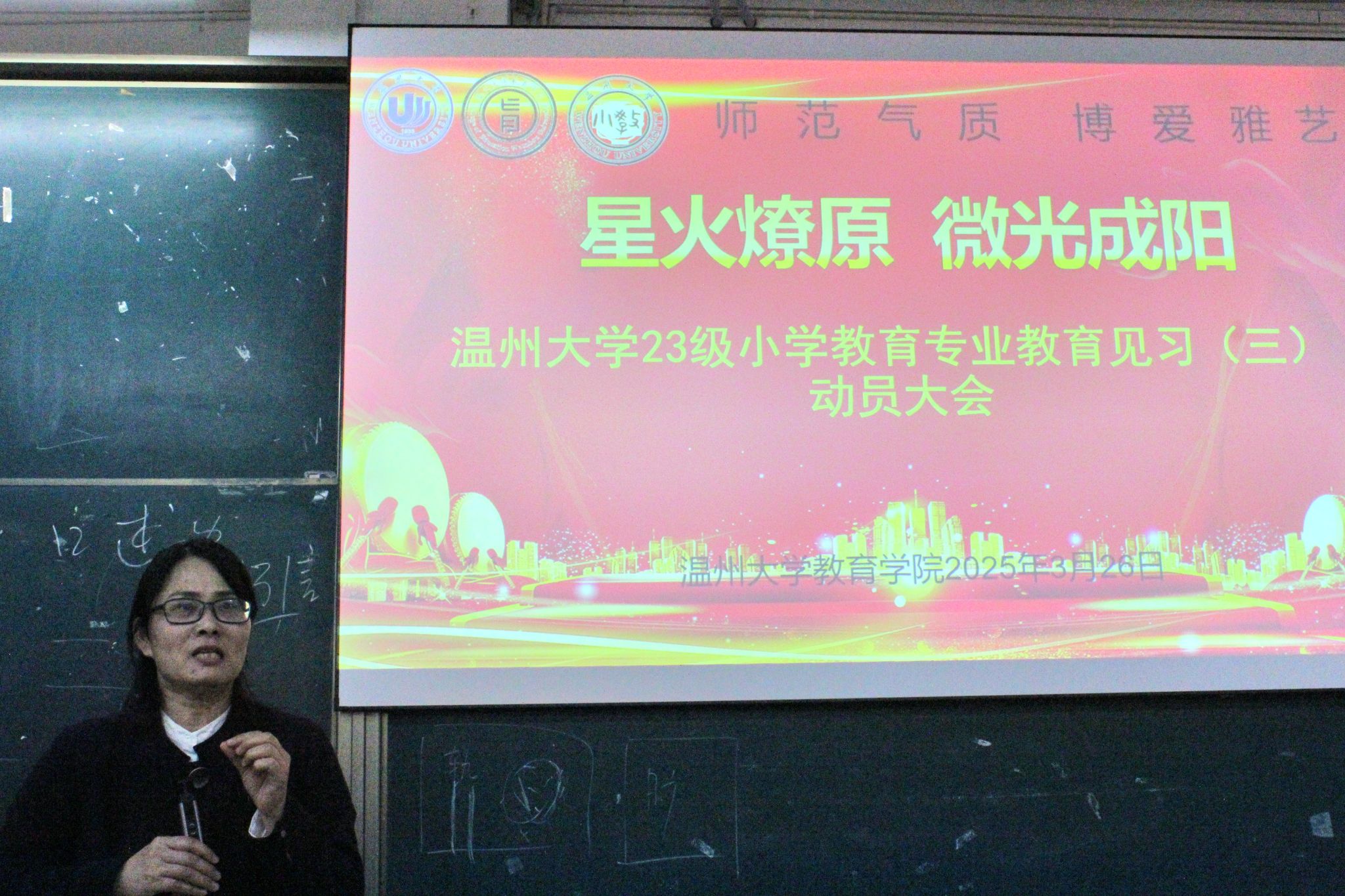 春风和煦,绿意满园。2025年3月26日下午,23级小教学生齐聚温大北校区瓯4-112教室,召开第三次教育见习动员大会。91吃瓜 林琛琛副院长、小学教育系金丽芳书记,以及各见习点指导老师陈海娜、李默、罗前进等参加动员会。