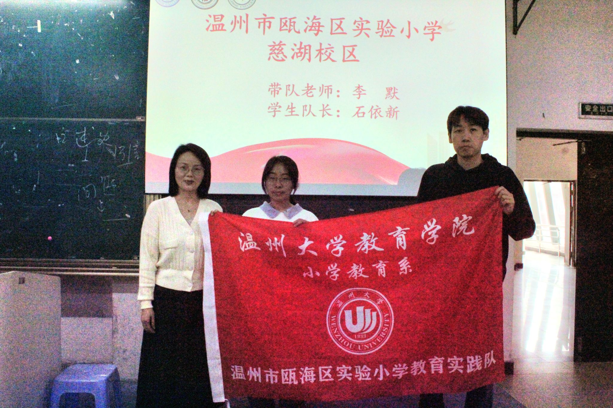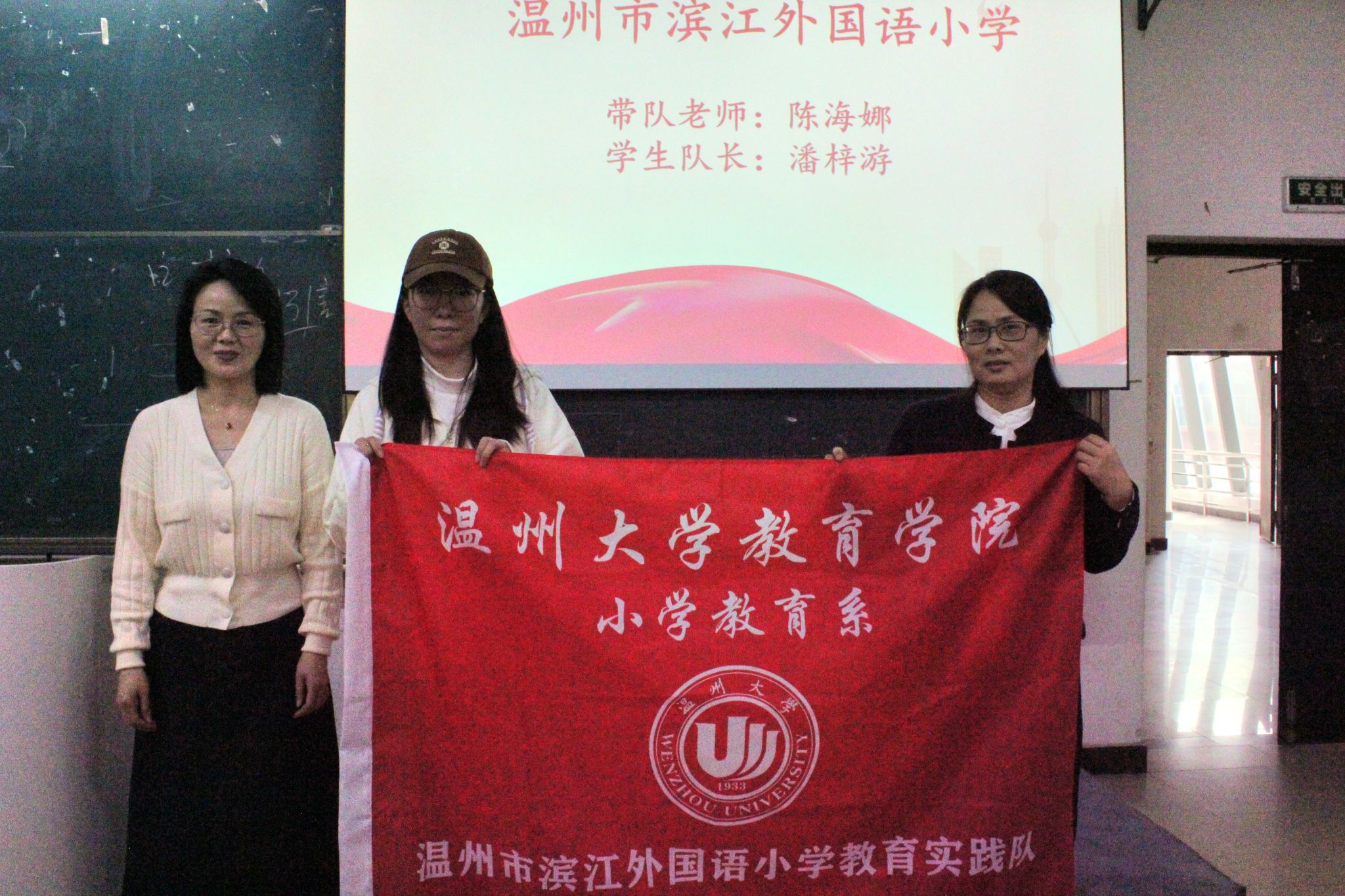 紧接着,小教系金丽芳书记为各见习学校的带队老师和队长授旗。