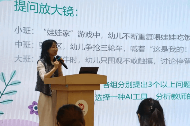 本次联合教研活动中,团队探究了教师如何从“经验提问”到'“科学引导”、从“单一互动”到“智能协同”,让精心设计的提问助力幼儿游戏。AI是教师的'智慧伙伴',而非“替代者”——它为我们提供了教育的更多可能。