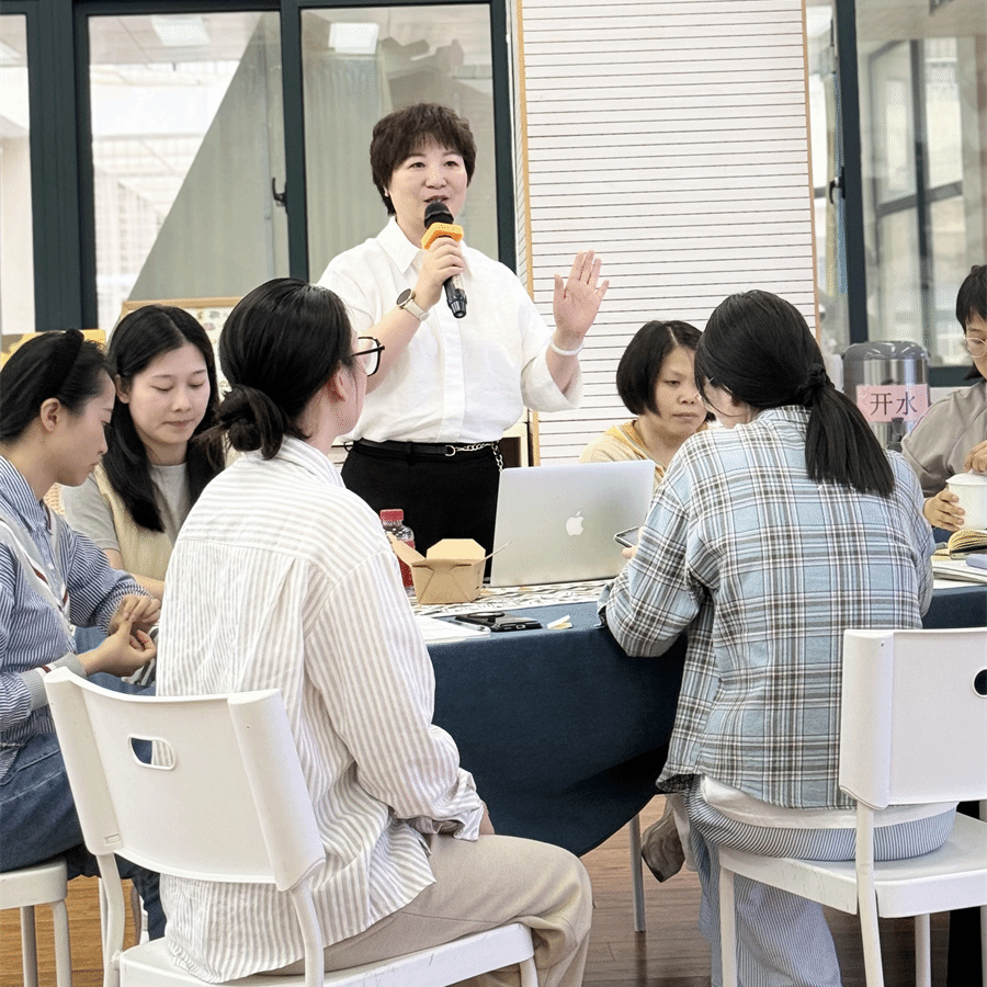 中二班连心如老师讲述本班游学课程《嗨,小羊》。老师们感知本课程脉络,体察课程疑惑矛盾,提出课程突破续点。“该如何续写该课程的游学故事呢?”众人纷纷出谋划策,为课程延续提供真知见解,聚焦问题,改进实操。