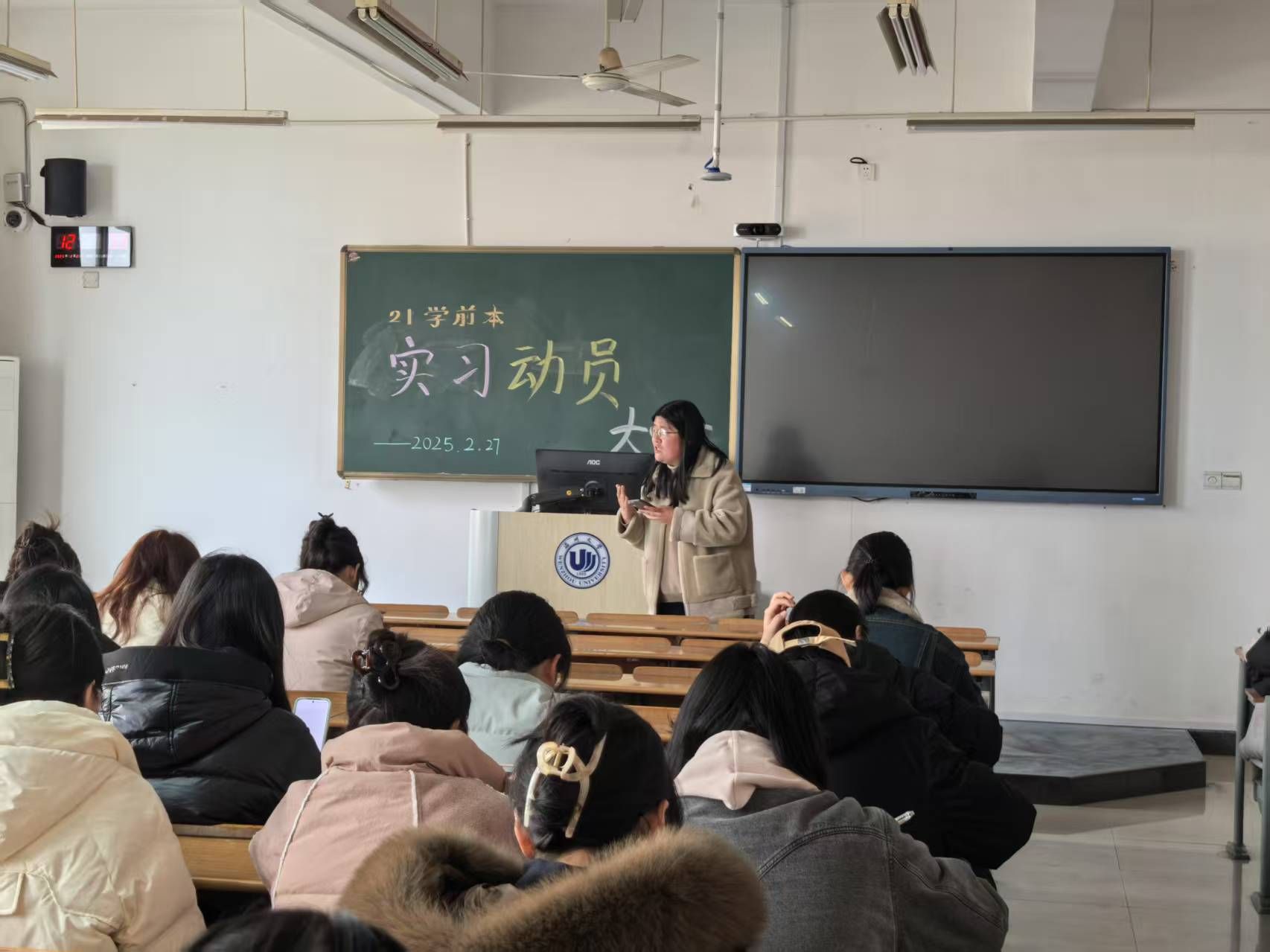 本学期第2-5周为21学本的教育实习安排,为了引导学生做好实习前的各项准备,保证实习工作的顺利开展,2025年2月27号中午12点,学前系在北校区4-406教室开展了21级学前教育本科班实习动员大会。本次会议由学前教育系张晓霞和柴林姗老师主持,陈旭微、王瑶和陈铿等实习带队老师以及全体21级学前教育本科班实习生出席会议。