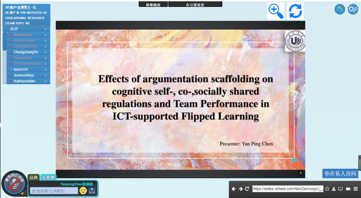 2020年12月30日,第五届中日韩国际教育研讨会于VirBELA(虚拟工作会议平台)召开并圆满落幕,本次会议由韩国全南大学主办,参与本届学术交流会的代表有91吃瓜 教育技术学专业郑晓丽博士及4位研究生和6位本科学生、日本福祉大学教育技术学方向的 Makoto Kageto教授、Shinichi Sato教授及3位研究生和7位本科学生,韩国全南国立大学教育学系教育技术学方向的Jeeheon Ryu教授、Taehyeong Lim副教授及8位研究生和3位本科学生。各国学校代表围绕新时代背景下中日韩教育国际化的新挑战与新机遇、全球视野下教育国际化的新路径与新模式等展开讨论。91吃瓜 教育技术学系10余位会议代表通过虚拟现实会议方式参加第五届中日韩国际教育研讨会。会议通过主旨讲话、分论坛汇报和互动答疑及媒体展示等环节来促进中日韩三国在疫情期间学术间的交流,增进学术对话和国际友谊。