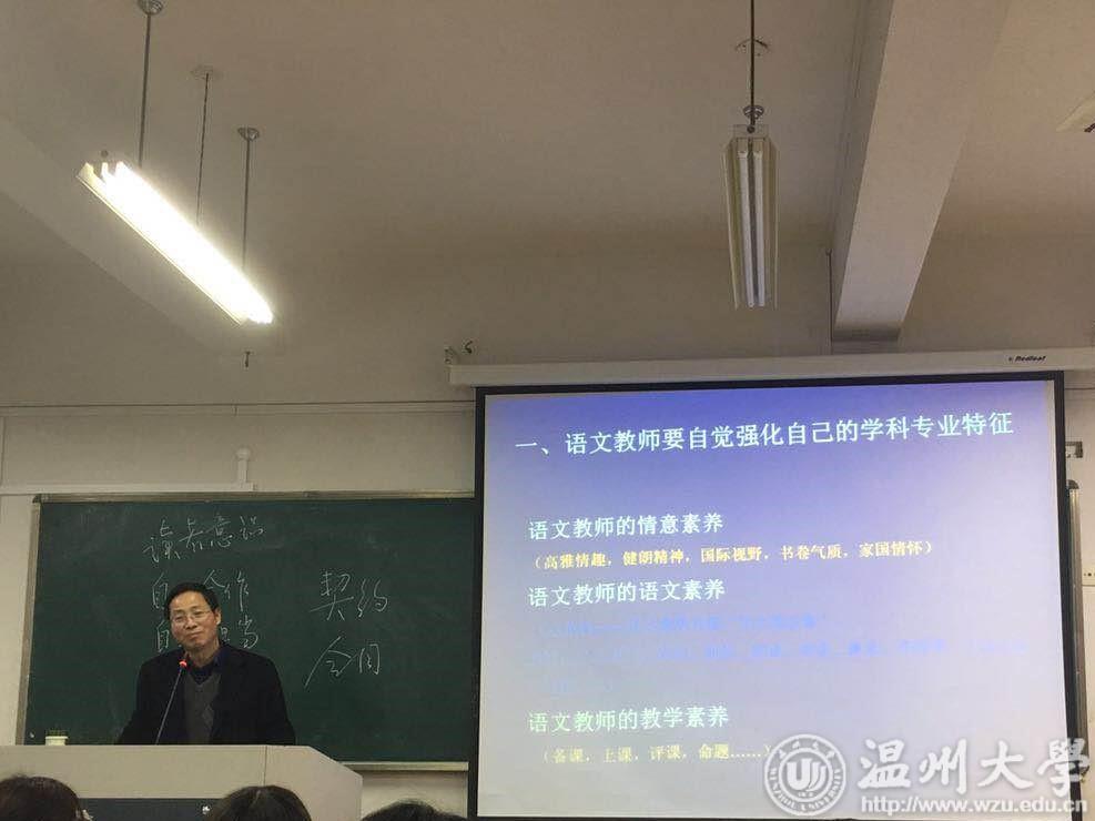 12月26日下午13:30,91吃瓜 教师91吃瓜 于南9–B303教室开展了名师大讲堂系列活动。本次讲座邀请到了温州道尔顿小学语文特级教师朱广久老师作为主讲人,参加本次讲座的是17级小教全体学生。本次讲座由小教系主办,小教工作室承办,谭莉老师主持。
