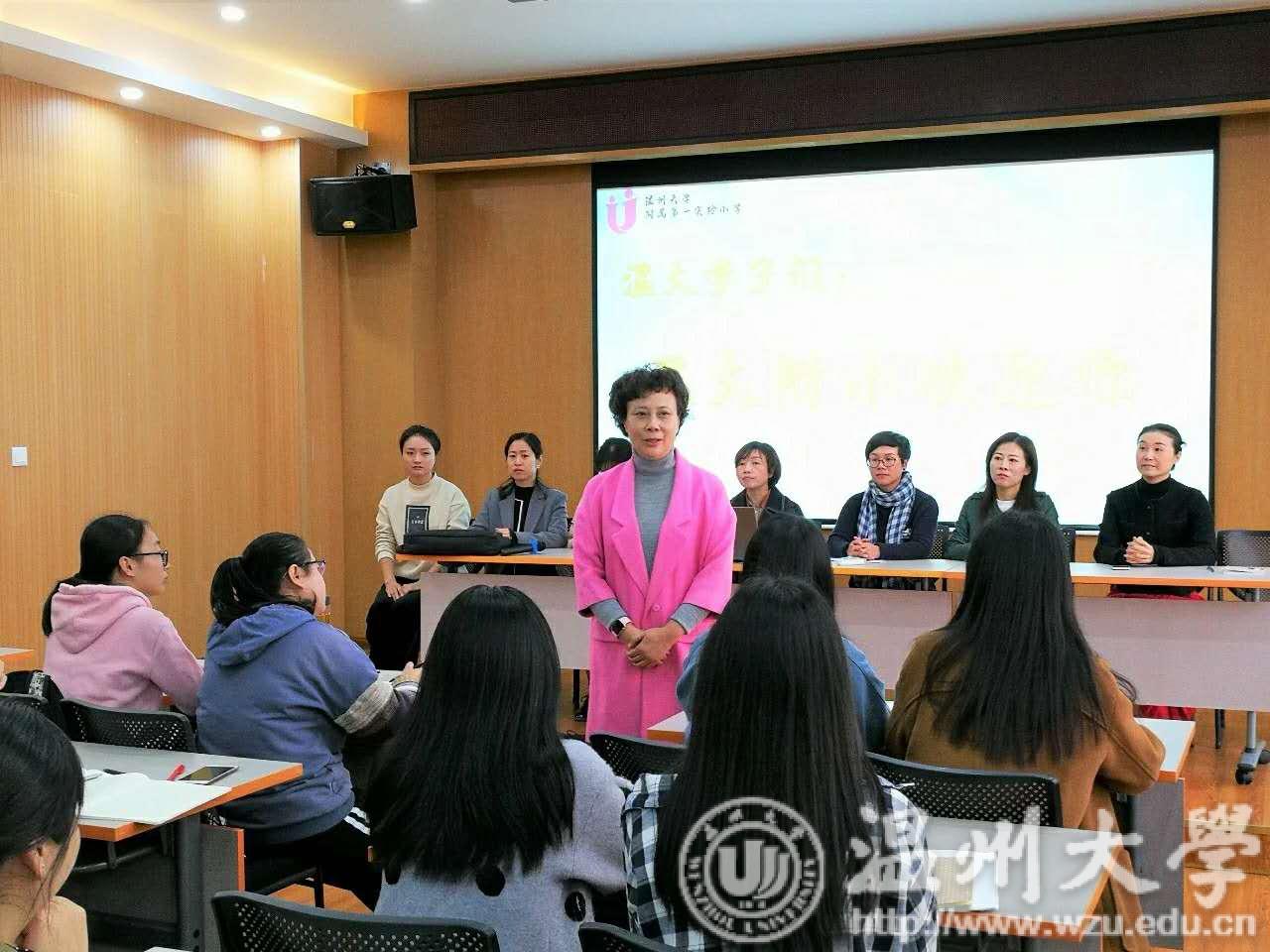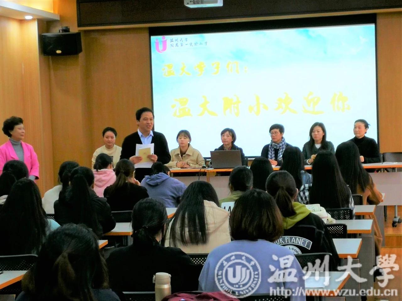 温大附小的老师们对参加此次见习活动的学生表示热切的欢迎和殷切的希望。与会人员有温大附小校长林培明老师、温大附小校长兼见习指导师张晓瑜老师、主持人叶完全老师、各位见习指导老师和全体见习生。