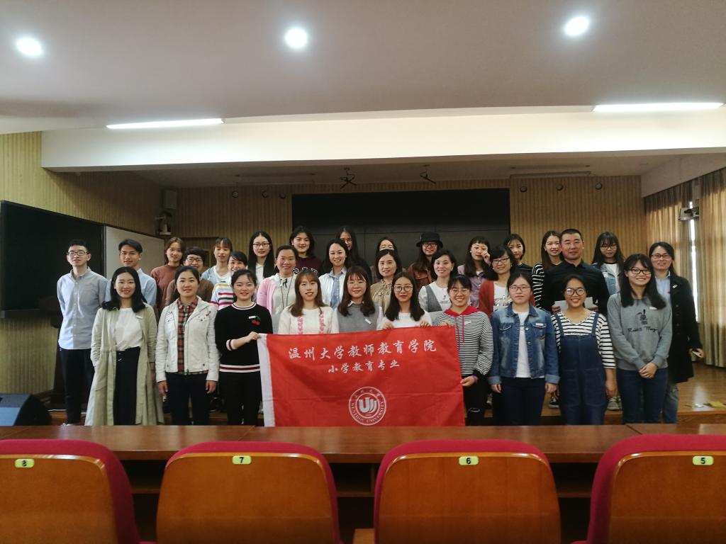 最后一个环节是小教系陈海娜老师讲话。陈老师对瓯海区实验小学能够给我们提供这么优越的实习条件表达了感激之情,也希望我们实习生能够多问、多思、多学。
