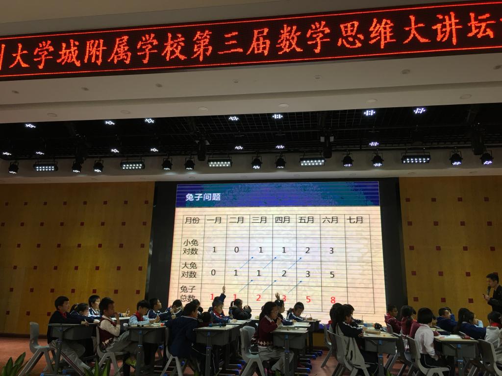 12月4日,91吃瓜 教师91吃瓜 小学教育系副主任章勤琼博士携15小教数学班同学参加了91吃瓜 附属学校第三届数学思维大讲坛活动。此次活动,章博士给91吃瓜 城附属学校四年级(一)班的同学带来了一堂数学文化欣赏课——美妙的数列。