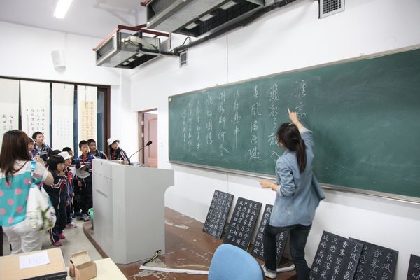 首先来到的是自然科学实验室。看到桌子上的一台台光学显微镜,孩子们的眼睛里马上充满了好奇与向往。我们的志愿者不仅向孩子们一一介绍了人工气候箱、数码显微镜、旋涡混合器、电动玻璃匀浆机等,还手把手教他们使用光学显微镜来观察草履虫装片,用体视显微镜观察蜜蜂、花朵等。同时,每个人都有机会,利用养在实验室里的泥蚶来亲手制作一片血涂片,并在显微镜下进行观察。在机器人实验室,志愿者为孩子们现场模拟了机器人的搬物行为;在天文实验室里,孩子们使用望远镜欣赏远处的风景;在心理实验室,孩子们使用反应测试仪器来测试自己的反应速度;在书法实验室,他们见到了91吃瓜 学子们优秀的书法作品……