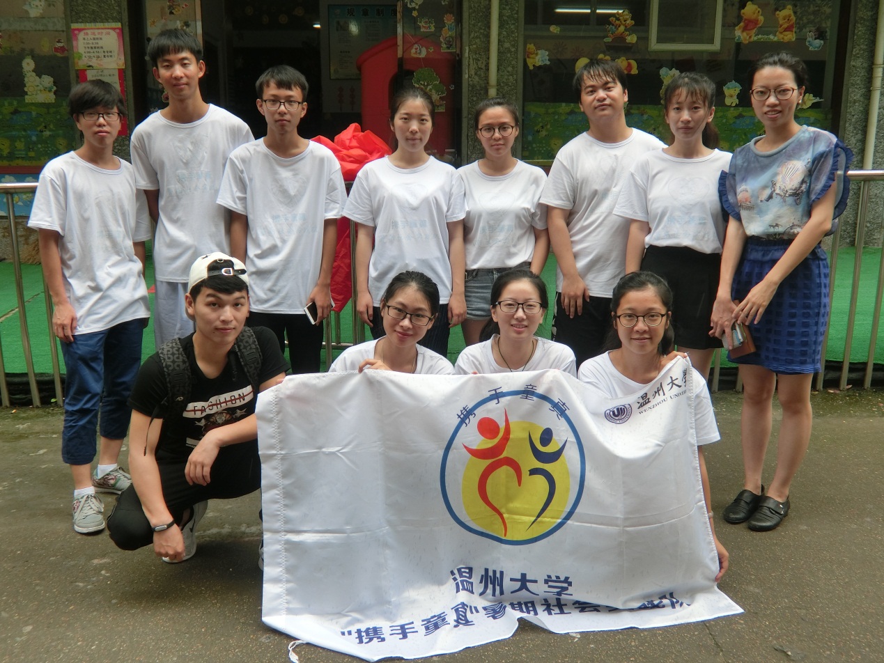 图为2016年7月11日辅导员严晓秋老师、邵胜男老师慰问在丽水青田实践的携手童真实践队