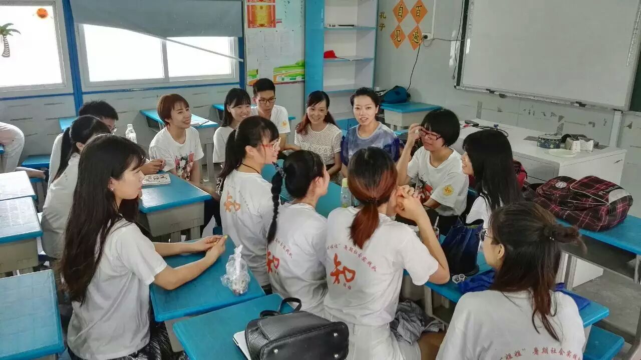 图为2016年7月14日,杨丽君副书记、严晓秋老师慰问知心姐姐实践队