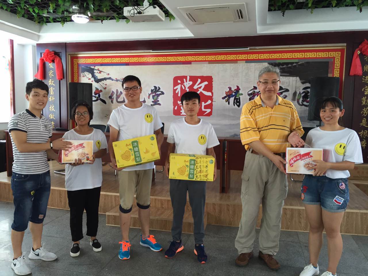 图为2016年7月14日,党总支副书记杨丽君、辅导员严晓秋以及指导老师陈铿赴青绘实践队进行慰问