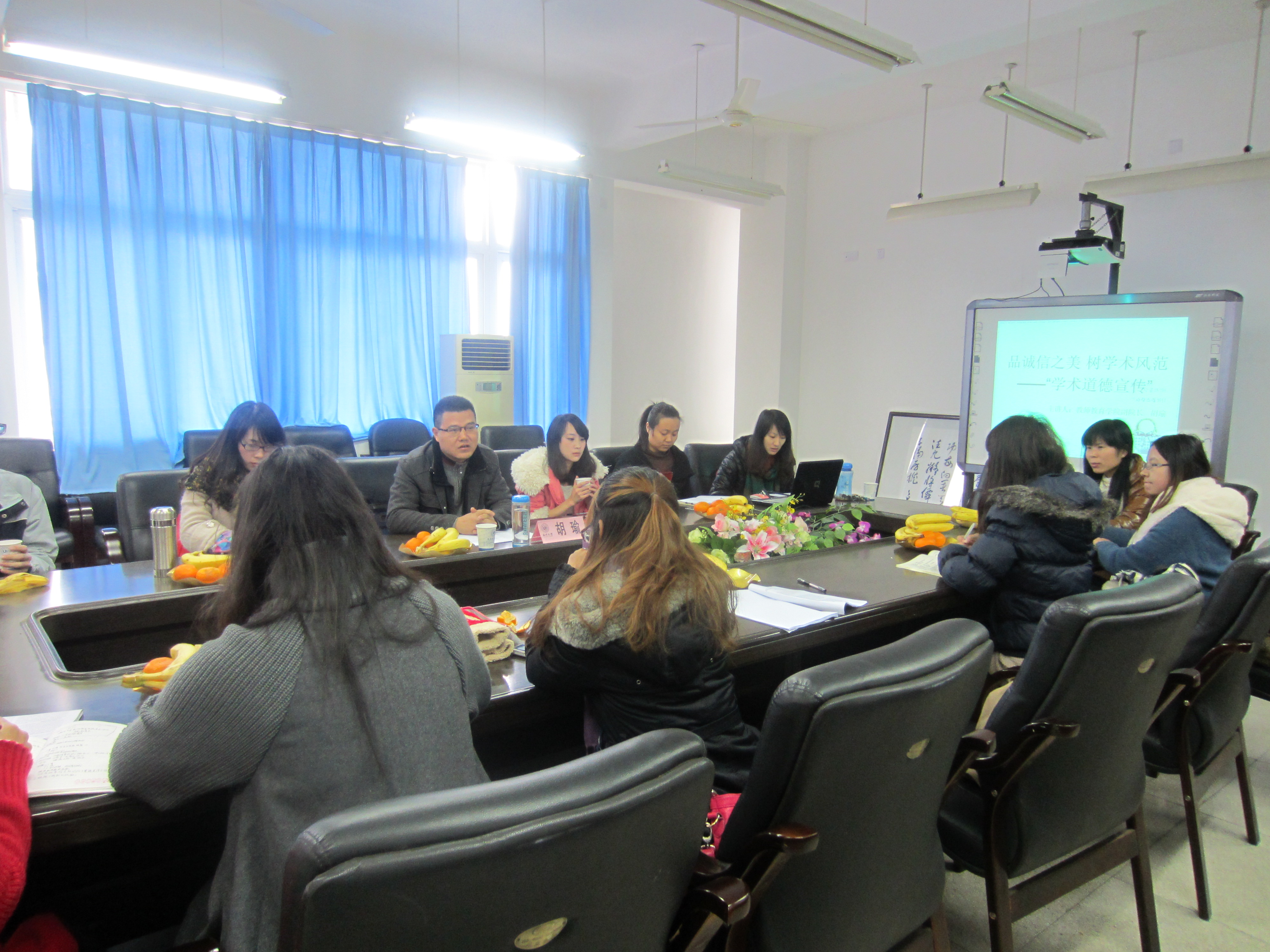 胡瑜老师首先讲述学术道德规范的基本要求,既要坚持科学真理、尊重科学规律、崇尚严谨求实的学风,勇于探索创新,恪守学术道德,维护科学诚信,然后列出常见的,如,抄袭、剽窃、侵吞、篡改他人学术成果,捏造数据或结果,成果发表、出版时一稿多投等八大学术不端行为,并举出相关的典型学术造假案例及其城的危害,如浙江大学贺海波论文造假案件等。最后,胡瑜老师就如何树立正确的学术道德观与同学们进行互动,同时讨论当前学术中存在的一些问题。