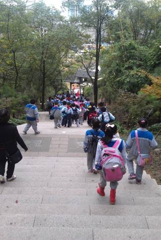 本周五锦湖实验小学的师生一起进行了秋游。这天,天气还下着几丝小雨,我们实习生跟着锦湖实小的师生一路唱着《学习雷锋好榜样》,步行至万松山脚下。这一路,虽然天时不时的飘起了阵阵小雨,但是没有打消我们的积极性。一路上,实习生一路为学生鼓劲,帮助班主任管理队伍的纪律,还为一些背不动书包的学生背起了包袱。一路上,实习生与班级学生的关系有了很大的改善,孩子的笑声也为我们带来了很多欢乐。