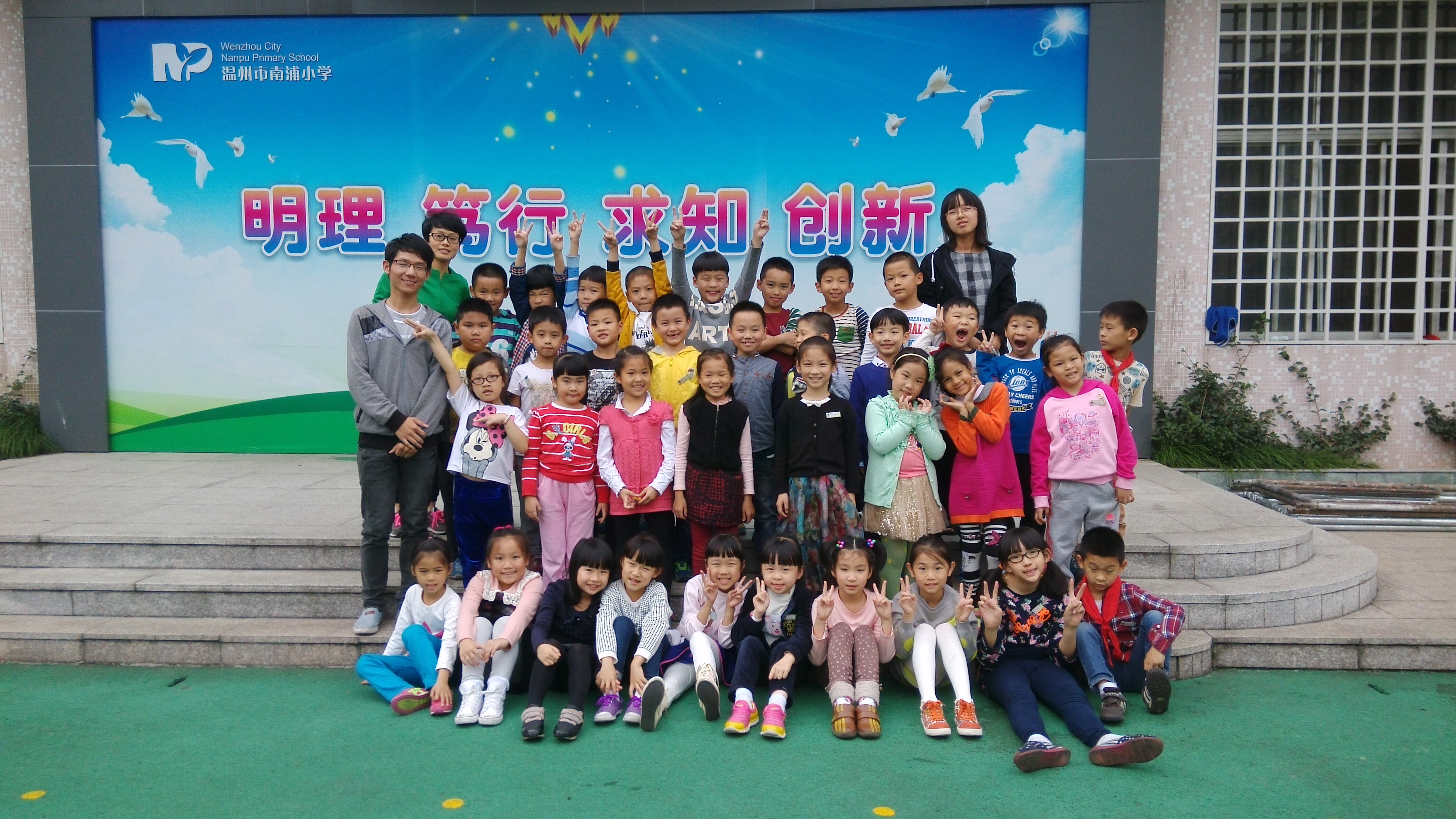 最后见习生与南浦小学东校区校方领导合影留念。校方对见习生这十四天的见习做出了高度的评价。教导处的周晨红老师评价见习生工作认真负责,做事细致,十分努力,给东校区的老师们留下了良好的印象。不少同学的见习手册评语里,都出现了勤奋好学、踏实能干、虚心请教、工作负责等评语,为我们的见习画上了一个圆满的句号。