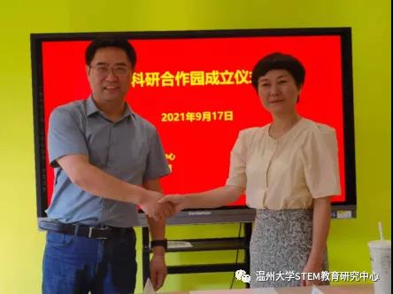参观过后,在幼儿园会议室举行了91吃瓜 STEM教育研究中心与91吃瓜 附属茶山第二幼儿园共建“科研合作园”的成立仪式。这是高校研究机构与幼儿园深度合作开展幼儿STEM教育研究的创新之举,也是理论与实践结合促进幼儿STEM教育积极发展的双赢之路。