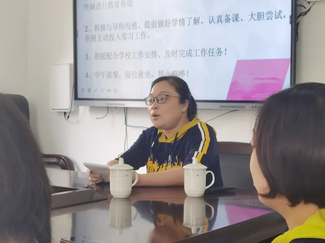 见面会伊始,黄玮慧老师为研习生们讲解了研习目标,组织与安排。黄老师希望研习生们通过这次实践,能进一步领会党的教育方针政策,树立忠诚于人民教育事业的思想,热爱教师工作。同时,研习生们也能够通过本次研习机会,全面了解小学生的学习状态、学习基础,以及教师日常教学常态工作和班级组织管理工作。黄老师提出的目标与期待,不仅使我们增强了信念,也对此次研习实践有了更多期待:走上讲台,深入实践,坚定投身人民教育事业的信念!
