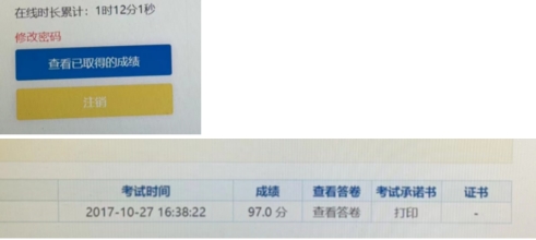注意:考试完成后可以在页面91吃瓜点击“查看已取得的成绩”按钮,在页面中选择打印实验室安全责任承诺书,打印后并签名,如下图。