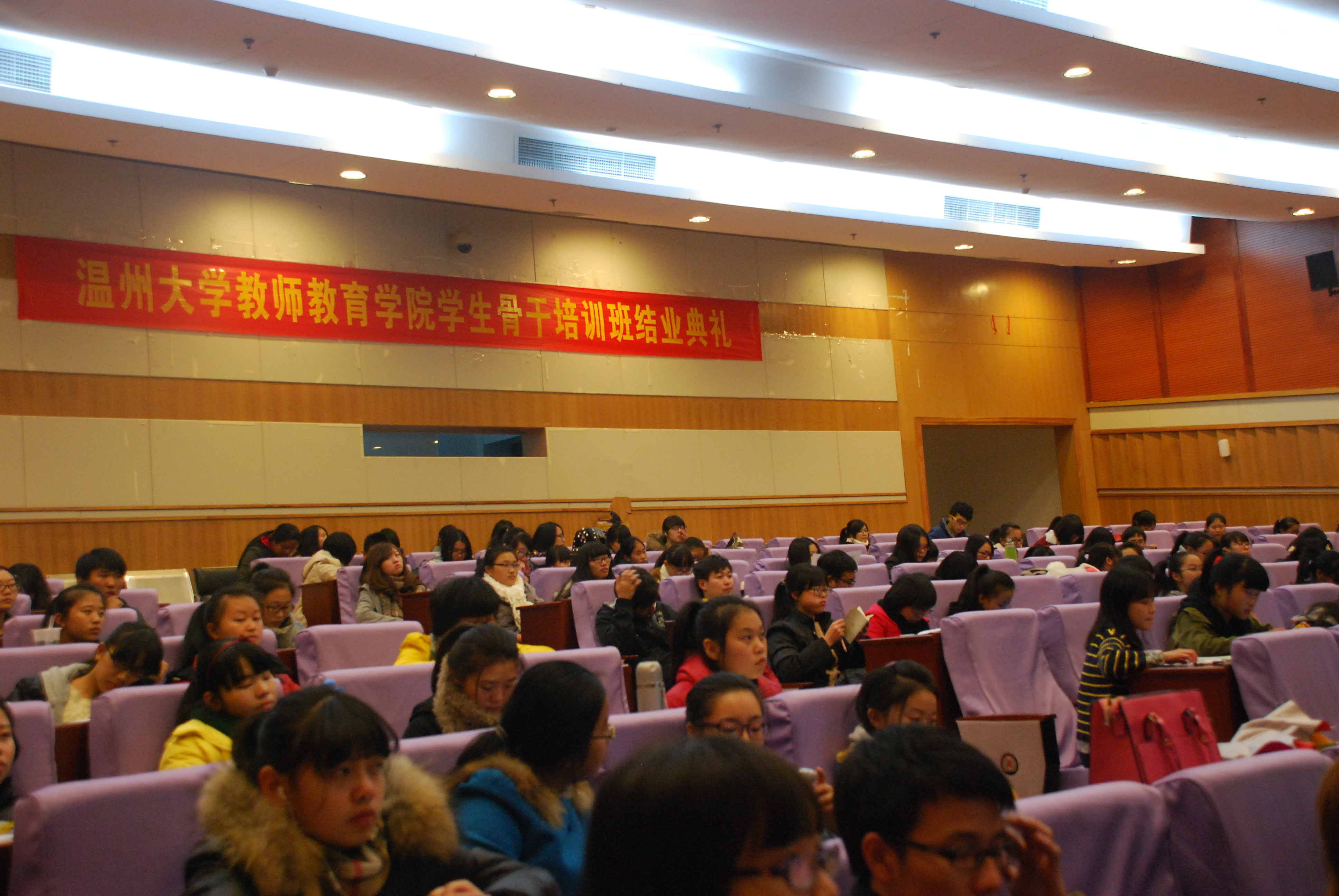 党总支书记蔡联群老师在南校图书馆育英大礼堂作了题为《凝聚中国梦,传递正能量——十八届三中全会精神学习体会》的精彩报告,辅导员严晓秋老师和全体骨干培训班学员近180人到场参加。