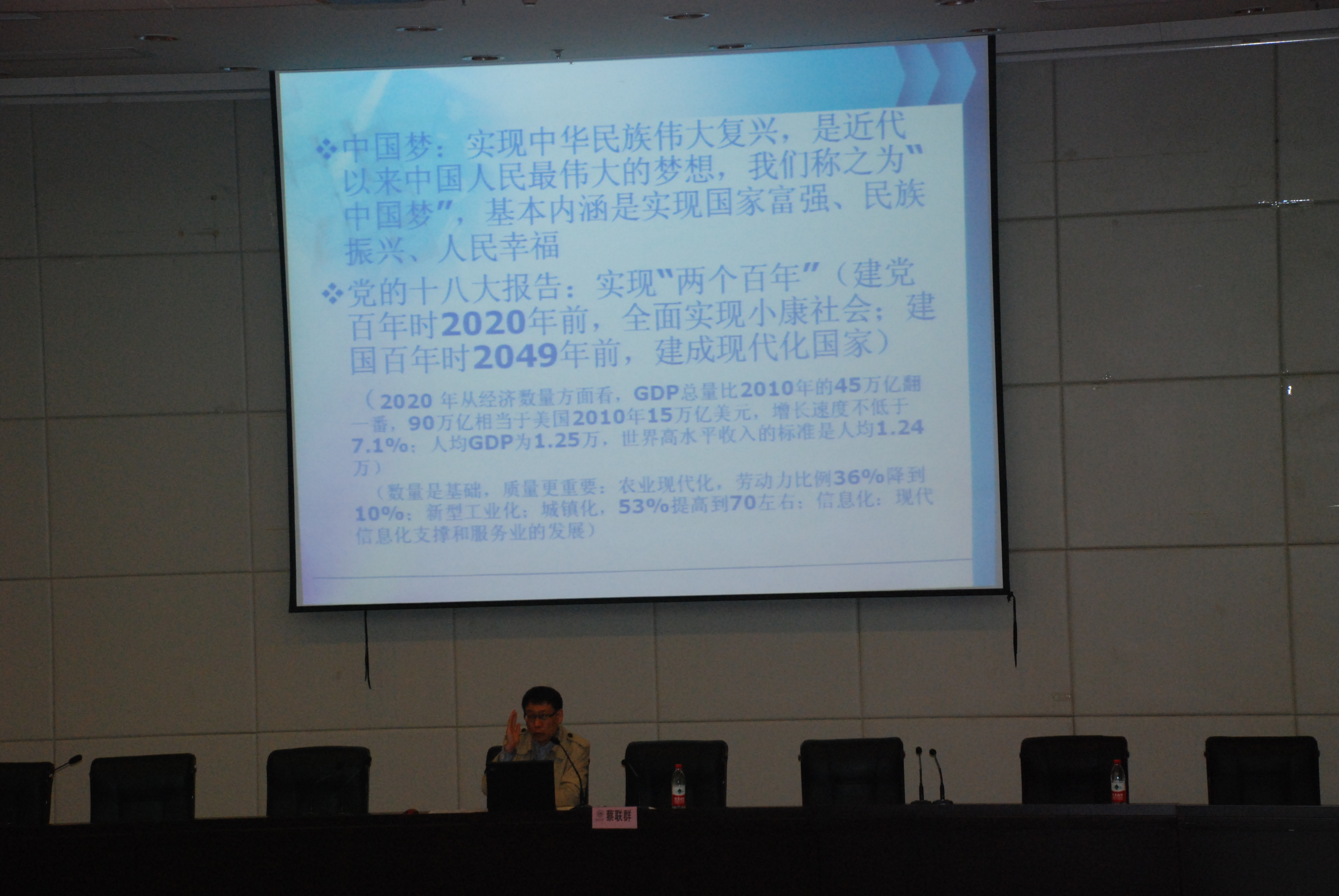 本次报告,蔡老师开场进向学员提问:“什么是中国梦?”,引发各位学员的深思,并围绕以“实现国家富强、民族复兴、人民幸福”为基本内涵的“中国梦”展开,联系作为未来教师的“中国梦”,向学员传递正能量。