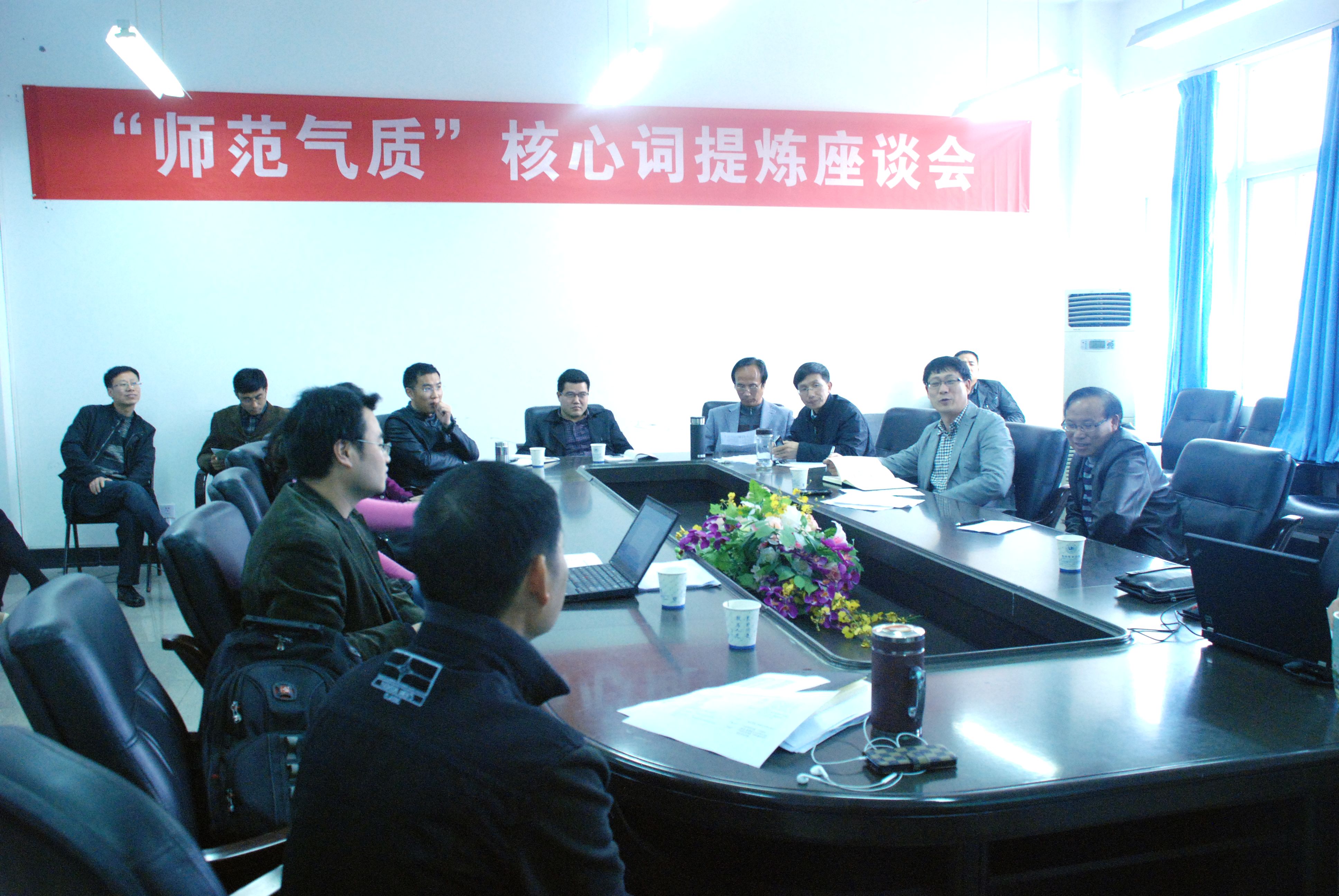 师范气质,并为今后形成高尚的教师职业气质奠定基础的核心词,累计200多个。学院领导多次在学院党政联席会议中专题探讨该项工作,并在这200多个核心词中凝练出了四套参考方案。除召开座谈会征求老师意见外,学院还借