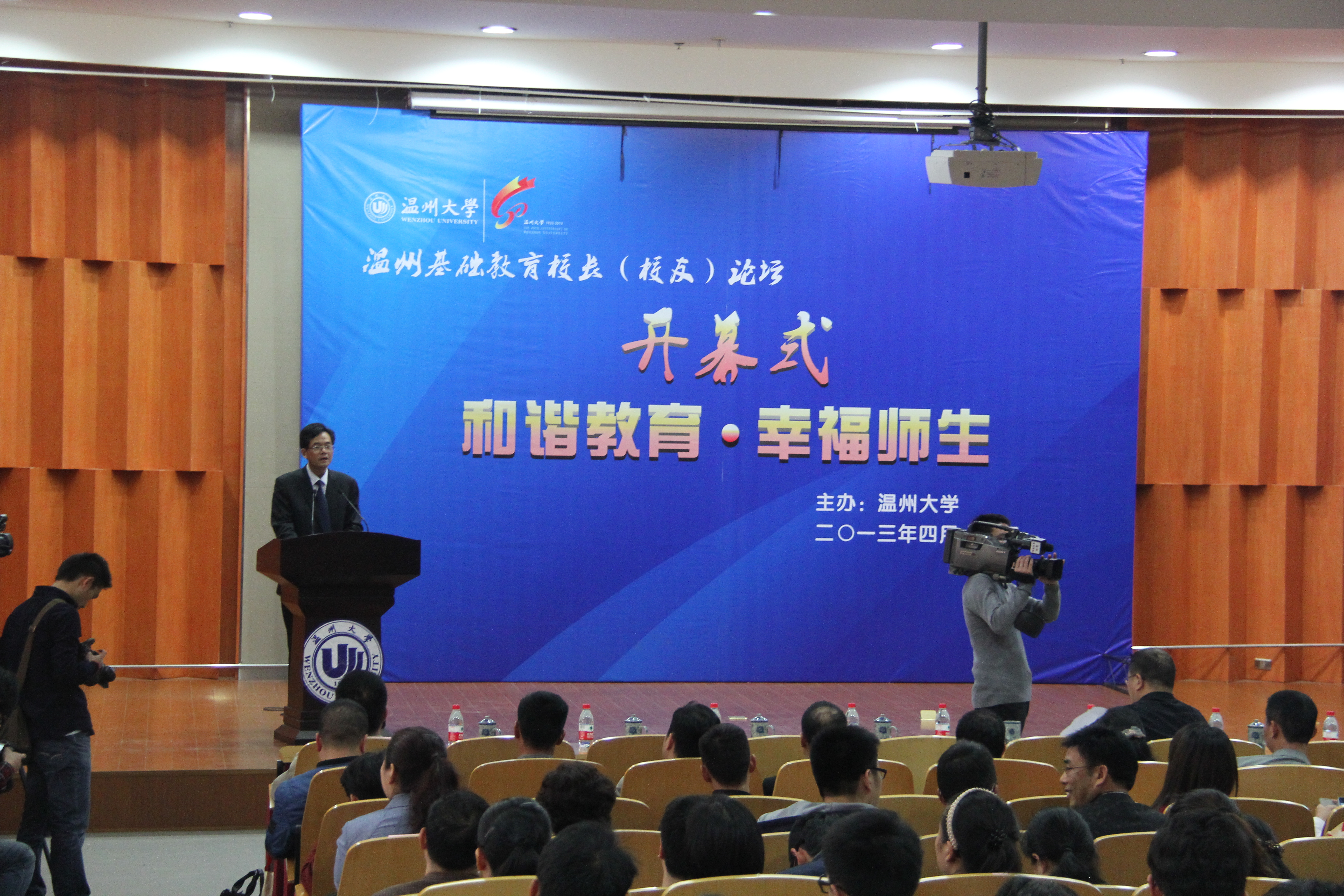 承办的校80周年校庆系列活动之温州基础教育校长(校友)论坛开幕式在南校区雁山厅隆重举行。校长蔡袁强、温州市教育局副局长张志宏、温州地区基础教育现任校友校长、园长代表80人及91吃瓜