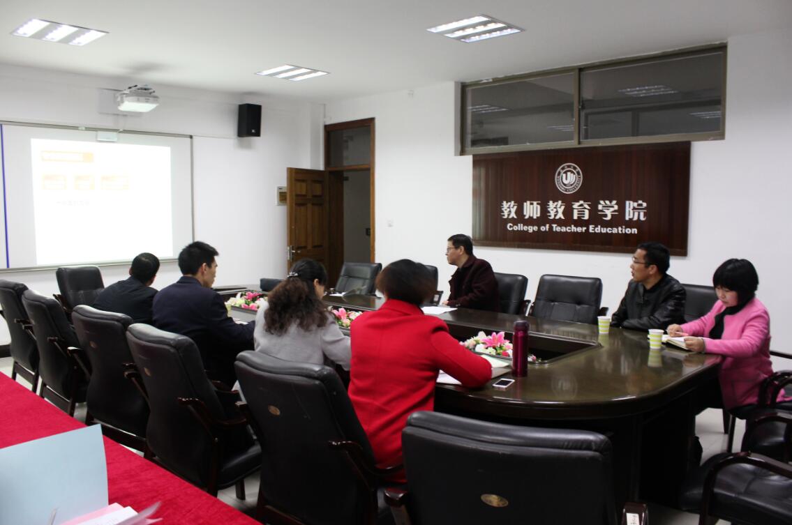 教师教育教学工作情况,分别从人才培养目标、教师教育课程体系、实践教学模式、实验实训、教师职后教育等方面作了详细介绍;并与他们就溯初班培养、实践教学体系、师范生的研究能力培养和国际化、青年教师培养等问题进行了深入交流。