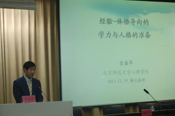 北京师范大学心理学院教授金盛华和浙江省心理学会领导曹立人为会员们开展学术报告。