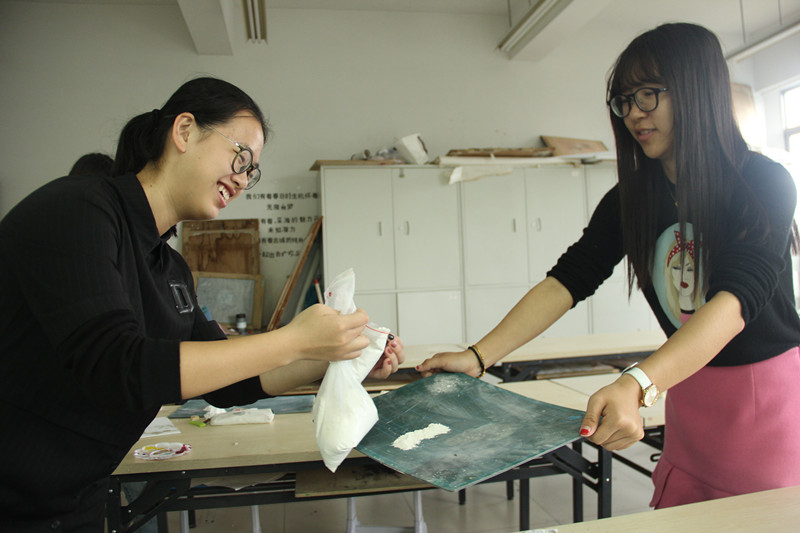 首先杨老师为瓯塑进行了详细的讲解。杨老师提到的以纯天然原料、纯手工创作的瓯塑艺术,有“东方立体油画”之称。它既是国家非物质文化遗产的瓯塑,还是浙江温州独有的民间艺术和汉族传统工艺美术品之一,至今有1000多年的历史。因为瓯塑具有构图自由,层次清晰,色彩丰富明快,技法繁多,立体感强的特点,加之它题材广泛,规格不限,所以被广泛应用于建筑浮雕、壁画、装饰图案及艺术挂件等中。杨老师以北京人民大会堂、北京中南海、杭州雷峰塔、浙江省人民大会堂等企事业单位为实例,给同学们更加直观清晰的感受,瓯塑艺术源于生活,并且也服务于生活。
