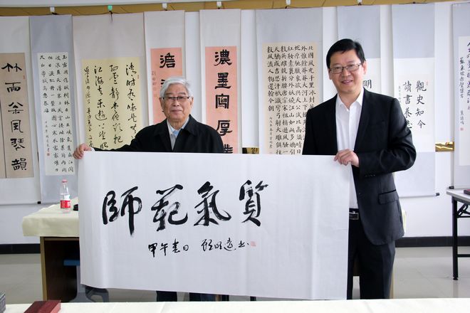 顾先生一行先后参观了蒙特梭利教学实验室、奥尔夫音乐教学法实验室、感觉统合实验室、未来教室、书法实验室,对实验中心先进的设备和教育理念表示赞许。在书法实验室,面对认真书写的学生,顾先生欣然写下“师范气质”的题词,笔力依然深厚遒劲,并对91吃瓜