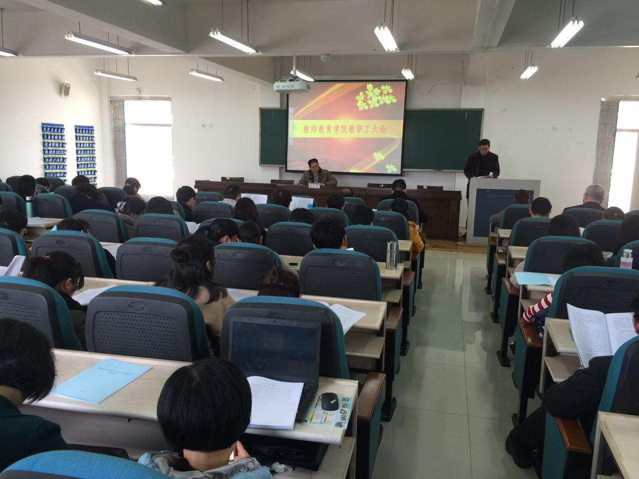 召开全院教职工大会暨学院干部任期届中考核述职大会。会议在南校区9C301教室召开,全院教职工参加了会议。会议由杨立淮书记主持。学校党委组织部胡保永同志到会指导并作测评。