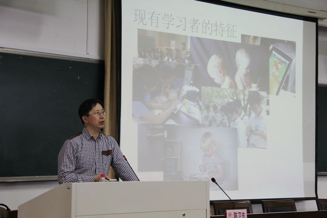 师生作了一场精彩的学术讲座,题为:未来课堂研究进展。陈卫东教授借鉴国外未来课堂经验,深入浅出地介绍了未来课堂的时代背景、自身特征及发展方向,并与师生就未来课堂相关问题进行了热烈的讨论,在场师生深受启发。(摄影:胡铸鑫)