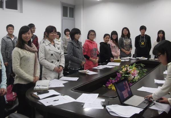 教务处陈淑洁老师为志愿者讲解了师范生教学技能竞赛的背景及历年赛事情况、师范生教学技能竞赛基本知识、本次大赛住宿宾馆及周边交通情况、赛事具体安排和接待工作,以及温州高教园区基本情况、学校历史与基本情况等内容。教务处易招娣老师重点向大家讲解了礼仪与形体的基本知识,并指导志愿者现场练习礼仪姿态。与会志愿者则结合自己的岗位要求,与两位培训师进行了咨询交流。本次培训会共历时近2个小时。