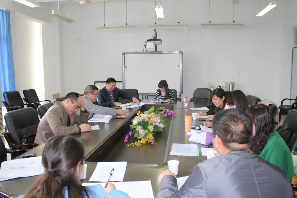 新教师汇报课研讨会。会议由学院教务科科长何笃玉主持,与会人员有新教师结对的专业指导师与相关系主任、书记、督导以及第七周开课的新教师等。