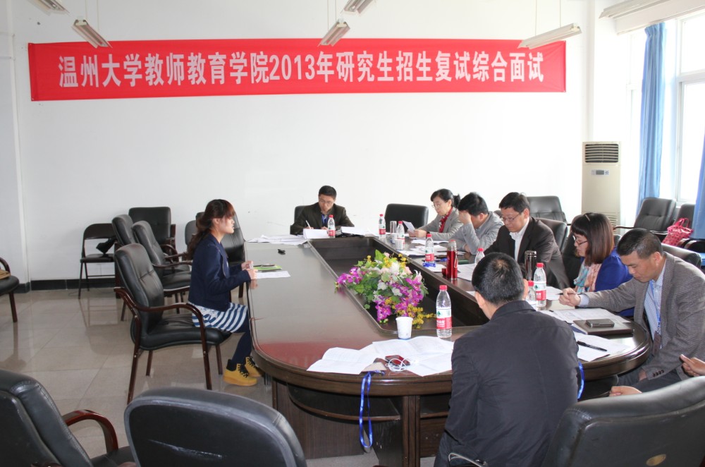 举行2013年硕士研究生招生复试综合面试。本次综合面试分为课程与教学论理论和学前教育组、教育心理学和信息技术教育组两组,分别由郑信军教授、胡瑜副教授担任组长,91吃瓜