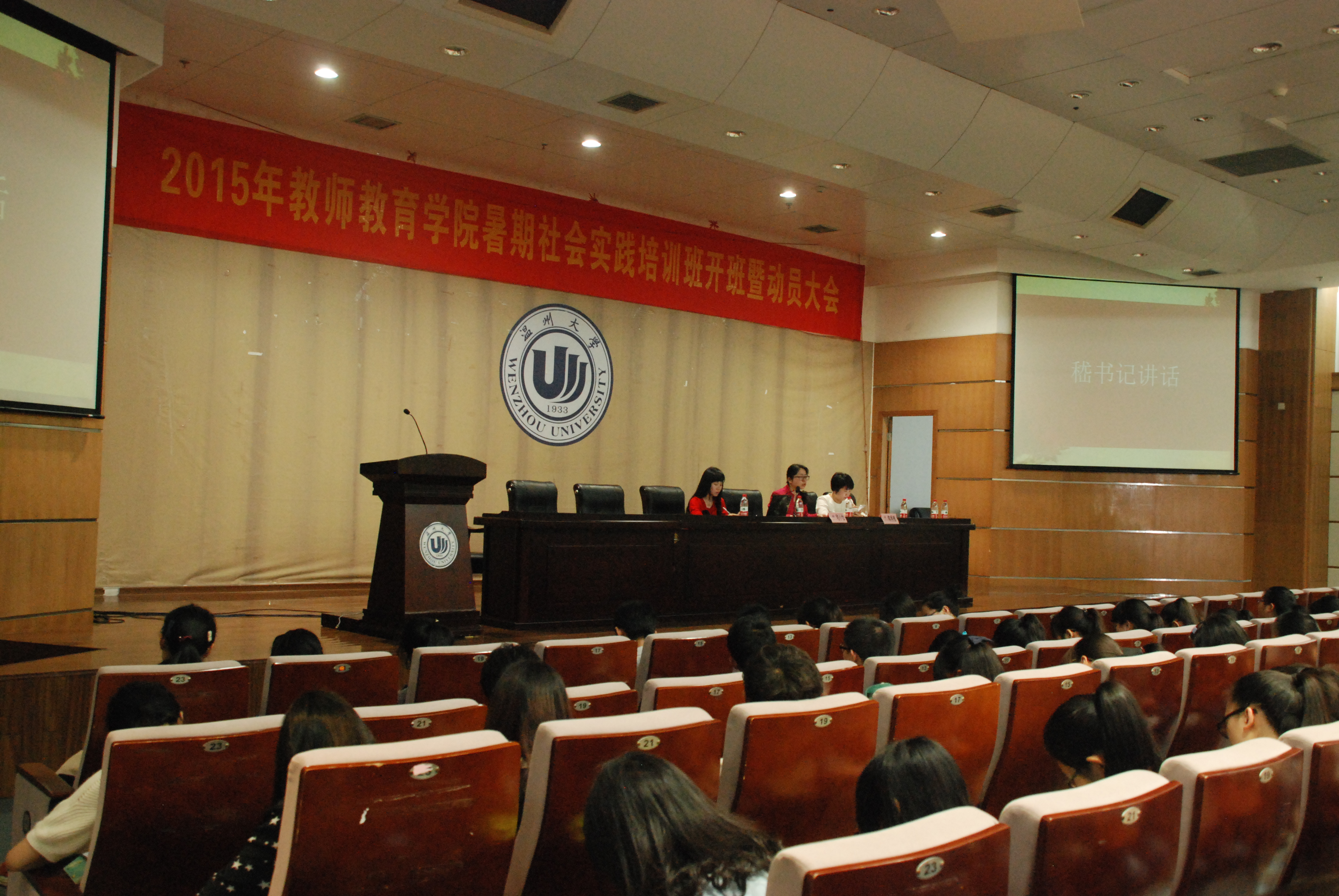 于信息楼报告厅举行了暑期社会实践动员大会。出席本次大会的院领导老师有嵇小怡副书记,陈秀雅老师。