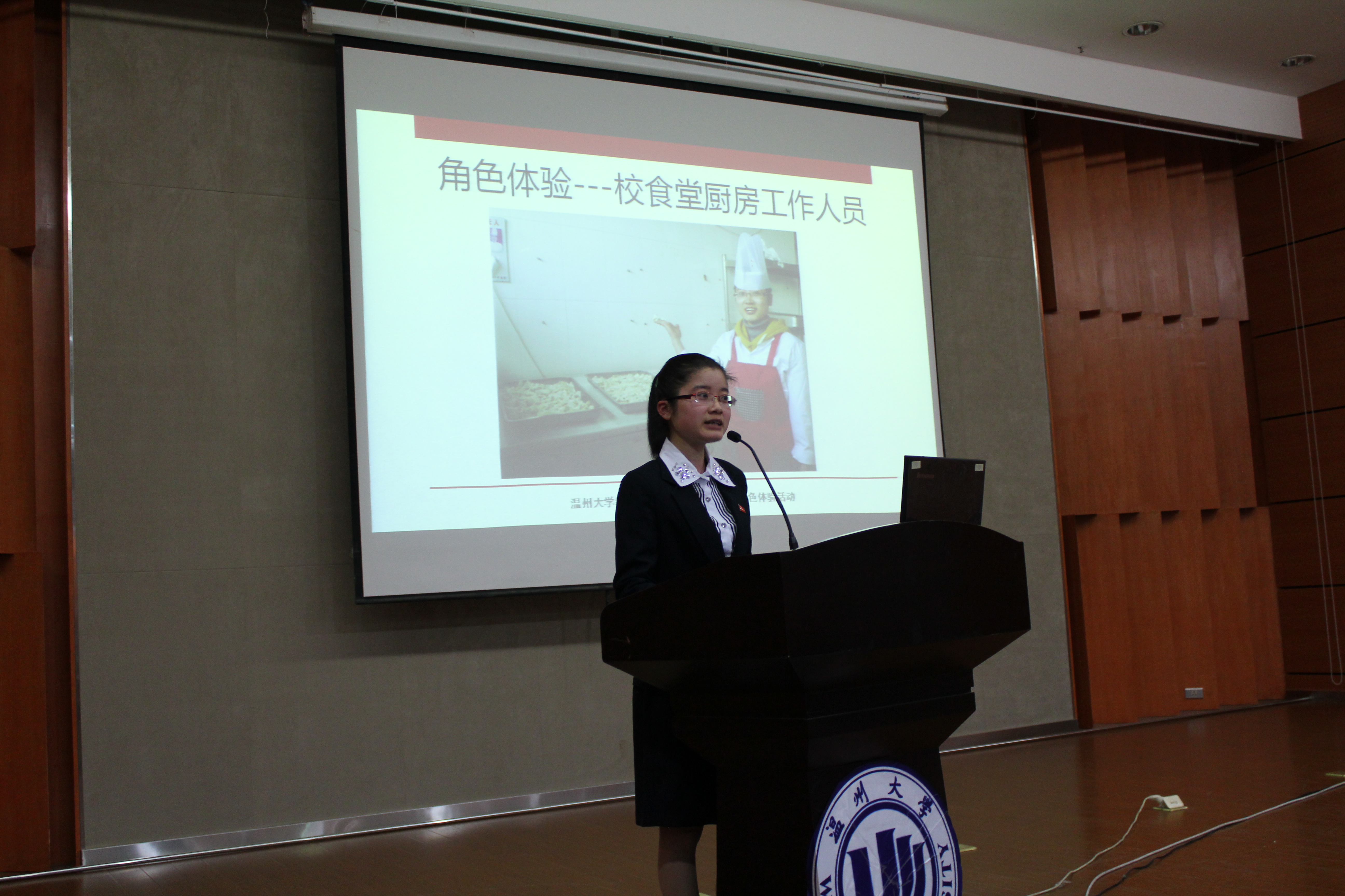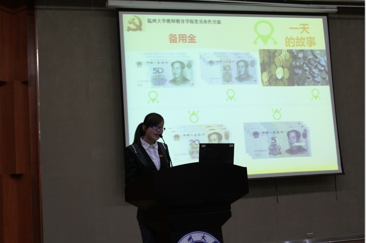 6位学生党员与大家分享了他们在寒假期间的角色体验。陈京京同学体验的是支教教师这一角色,她联系自己寒假参与广西支教志愿服务的体验经历,呼吁广大同学们关爱、关注贫困山区留守儿童,为支持我国农村教育事业贡献出自己的力量,积极参与到“大学生志愿服务西部计划”中来。徐玉华同学体验的是超市收银员工作,收银员工作的严谨性、规范性,使得这份职业充满了挑战,而同事之间的相互关心,又使这份职业体验充满了温暖。朱文婷同学体验的是学校食堂工作人员这一角色,她回顾了这一周的艰辛与不易,她倡议同学们要珍惜人民群众的劳动成果,厉行节俭,拒绝浪费,参与到“光盘”行动中来。骆利锋同学体验了建筑工人的艰辛生活,建筑工人干着最累的活,拿着很少的工资,却用双手创造出了一幢又一幢雄伟的建筑。他们因为破旧的穿着、物质的贫乏,不被社会所重视。骆利锋同学以他的工友故事为例,号召大学生们尊重每一份职业。吴银选同学体验的是敬老院护工的角色,从她温柔细腻的声音当中,我们感受到了老年人的孤独与无奈,关爱父母、关爱老人就是关爱自己的未来。林敏敏同学体验的是家电售货员的工作,在她娓娓道来的讲述中,在场听众们了解了如何运用消费心理学做好推销,感受到只要你踏实、努力,三百六十行,行行能出状元。