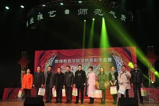拉开帷幕,两只吉祥物探头戏耍,摇摇摆摆地晃悠几下,带出了一段开场热舞,活跃的气氛瞬间弥漫了全场。郑信军院长首先致辞,对教院在过去一年里取得辉煌成果表示祝贺,对教院的师生表达了美好的祝愿。在讲话过程中,院长特别指出2016年教院学生自觉培养师范气质、追逐教育梦想,取得非常喜人的成绩。星光灿烂,彩灯辉煌,各类表彰和各个节目闪亮登场。