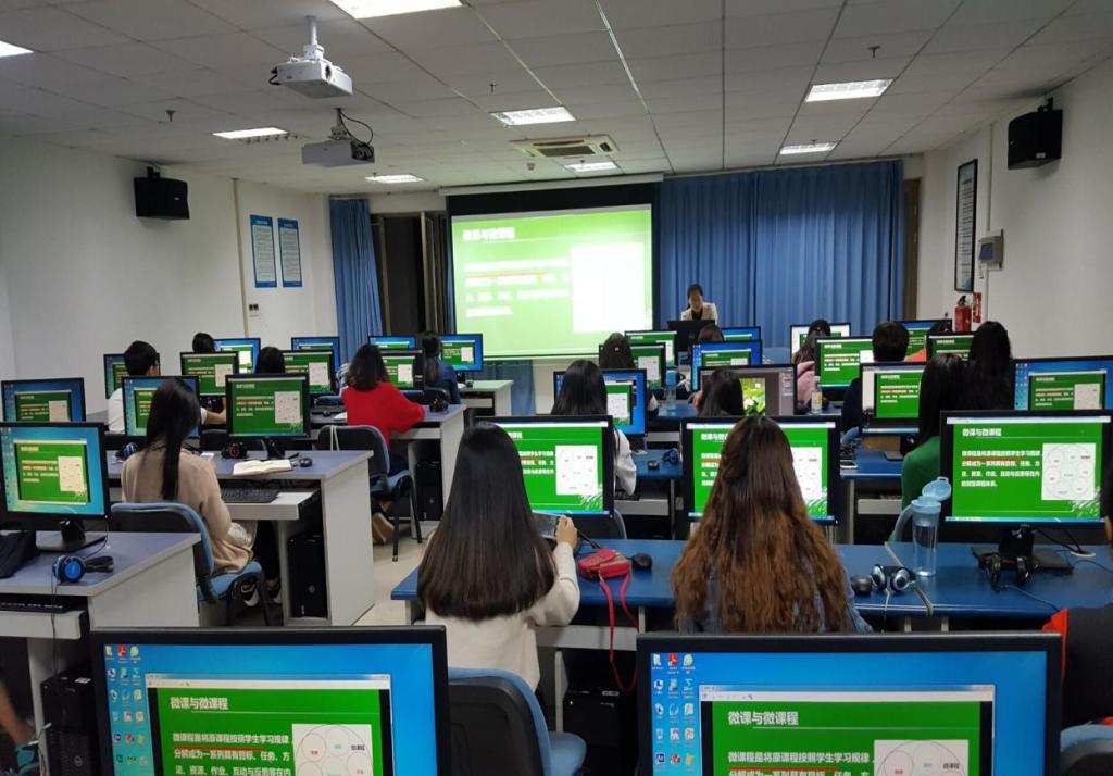 培训分为理论讲解和实践操作两部分。在理论讲解部分王晓静向大家讲解了如何理解、设计、开发、应用微课,让同学们在整体上对微课有了清晰的认识。之后重点讲解和演示了目前最常用的制作微课的方法-—Camtasia studio 屏幕录制。在实践操作环节,大家根据自己的专业选择素材,通过录制PPT的方式制作一节微课。在操作的过程中教育技术专业的研究生对大家进行指导和答疑。