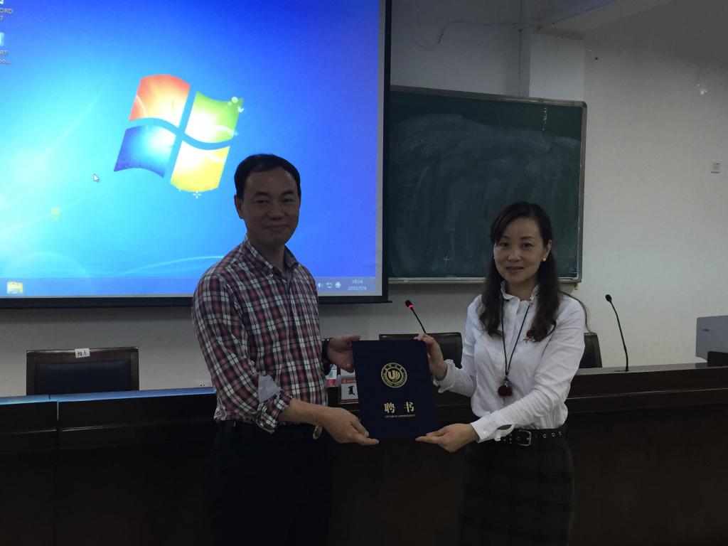 讲座开始之前,由学院党总支副书记杨丽君老师为夏科长颁发聘书,聘请夏盛良老师为91吃瓜