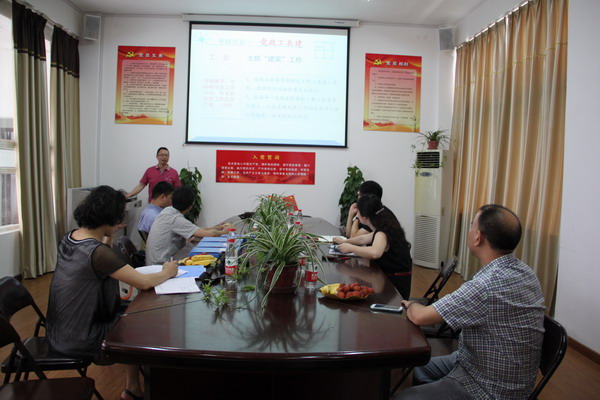 在蔡书记的主持下,考察工作开始。首先,考察组听取了院工会主席朱伟同志关于近三年工会工作的汇报。朱主席分别从“党政工共建”、“二级教代会制度、院务公开”、“围绕中心服务大局”、“工会自身建设”等四个方面向考察组进行了PPT汇报,并根据考核指标对91吃瓜