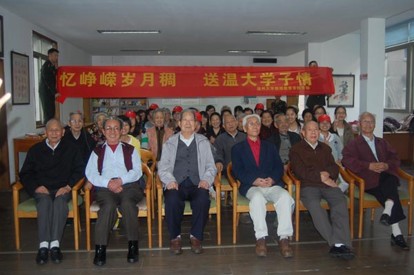 表演结束后,志愿者与老干部们拉起了家常,有部分则跟老人们打起了麻将。在聊天的时候,老人们都一个劲的夸我们的表演!在最后要走的时候还一定要我们把剩下的水果带走,送我们到了门口后,还不停地叮嘱我们要常来玩。呵呵,多么和蔼可亲的老人!我想他们其实是很希望我们这些后辈们去看看他们的!看!他们笑的多么开心! (10教技本:杜月美)