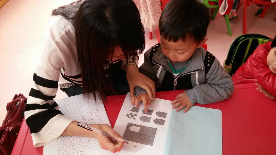 心理测量工作坊的同学们到达幼儿园后,好像融入了充满活力、童趣的欢乐的海洋。首先,他们根据陈秋珠老师的安排和园长进行了简单的会谈和交流,然后按照原有的计划,依次进入了各个教室熟悉和接触被测试的对象。和孩子们熟悉之后,测量工作坊的同学们开始了正式测验。本次测量活动运用了瑞文测验联合型(CRT)和皮博迪图片词汇测验(PPVT)来测试正常儿童的逻辑推理能力与接受词汇能力。瑞文智力测验是纯粹的非文字智力测验,是一套使用方便、用途广泛的智力测量工具,至今仍为国际心理学界和医学界所使用。皮博迪图片词汇测验是一套为发声有困难的人及聋人设计的测量其“使用”词汇能力的测验工具。该测验现已广泛地用于研究正常的、智力落后的、情绪失调的或生理上有障碍的儿童的智力。为了提高测验的信效度,使每一位孩子都能够更好地理解测试内容,以及让施测者更好地记录儿童在测验时的客观反应,测量活动采用一对一的方式展开。